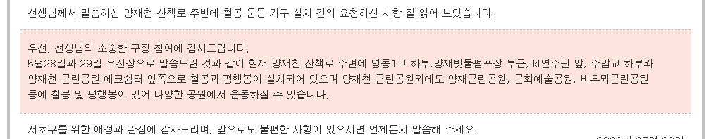 그래서 이것저것 검색을 해 보다 보니, 나와 비슷한 생각을 하는 사람들이 좀 있었다. 어떤 사람은 구청에 철봉 만들어달라고 민원도 넣었다고 한다.