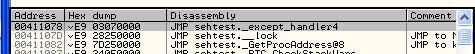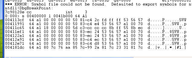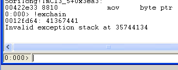 그래서 인텔 CPU머신에서는 SEH 코드를 디스어샘블 해보면, move DWORD ptr from FS:[0]와 같은 명령어를 볼 수 있습니다. 요 명령어로 예외 핸들러가 쓰레드에 설정되고 에러가 났을때 처리할 수 있게 되는 것이지요. 이 명령어의 기계어 opcode는 64A64A100000000 인데요, 만약 이 코드를 못봣다면, 해당 앱이나 쓰레드는 예외 핸들러가 없는 것입니다.