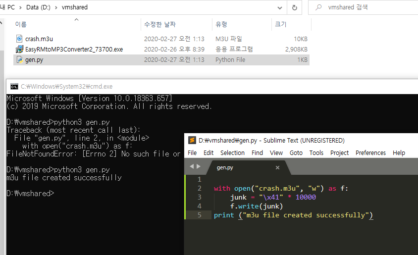 일단 crash.m3u파일을 만들었으니 저 파일을 guest vm으로 보내서 실행해보도록 하자.