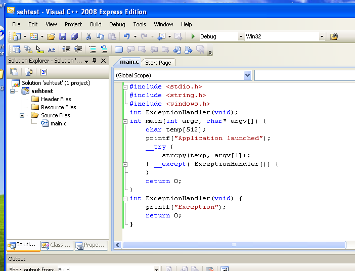 Xp에서 코딩하는 맛이란 참 특이하네요. 그러면 corelan 예제코드를 한번 빌드해보도록 하겠습니다.
