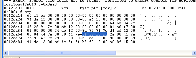 그리고 보면, NOP을 안넣었을때 크래시가 나는 곳이 0xff75f 부분인데 eax + 68에 접근을 한다. eax는 근데 쉘코드 맨 앞 부분과 관련이 있으므로 NOP을 넣으면 그 부분이 다른 값이 들어가게 된다.