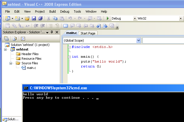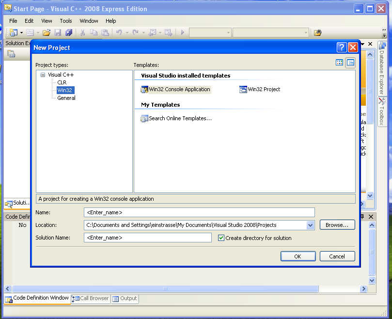 MSVC++ 2008 Express를 켜서, Win32 Console App 프로젝트를 생성을 합니다.