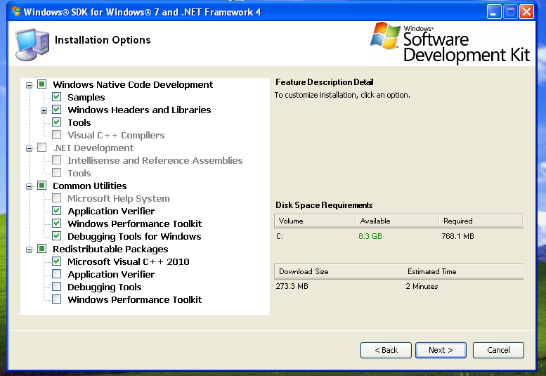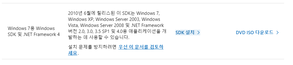 근데 가장 과거인 Win7 SDK를 보면, Win XP도 사용 가능하다고 되어있다. 이를 설치해보도록 하자.