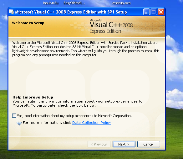 흠 근데 대략 이런 에러가 뜬다. .NET Framework 2.0 redistributable을 다운받아달라고 한다.