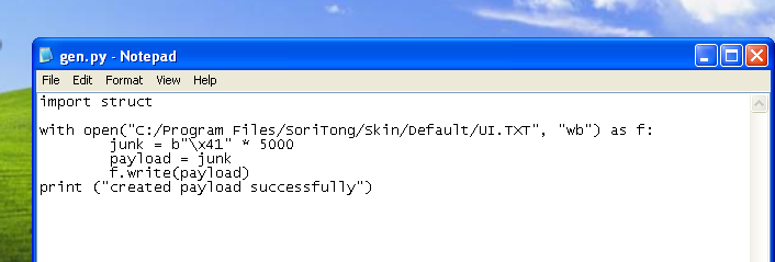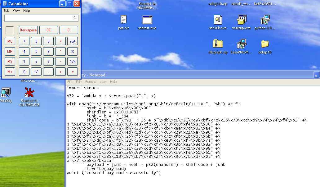 이제 NOP + \xcc로 디버거 브레이크만 잡는게 아닌, 실제 쉘코드를 넣어서 익스플로잇이 잘 되는지를 확인해보도록 하자.