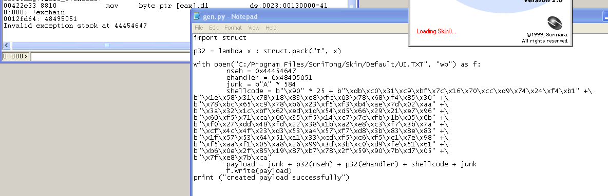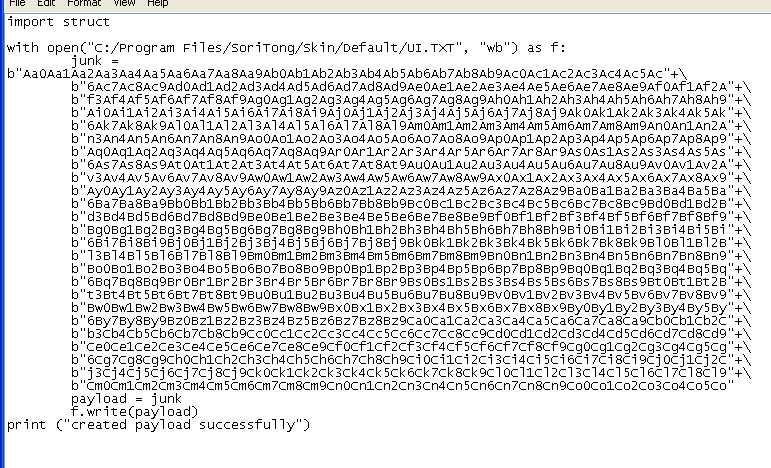 일단 Next SEH Pointer와 SE Handle Pointer를 덮어쓰는 양을 알아내야겠죠? UI.txt에 패턴을 줘서 알아내봅시다.