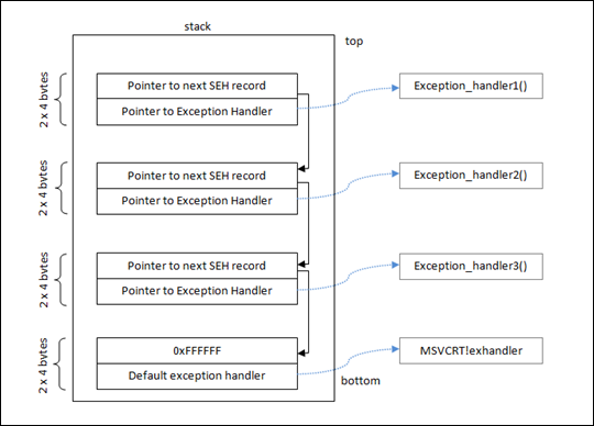 SEH는 스택 프레임의 구성요소입니다. 따라서 스택 프레임에 저장되지요.