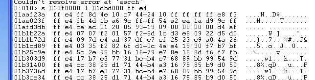 그러면 이 컨버터 프로그램이 실행하는 dll 라이브러리 중에 ffe4라는 opcode를 갖고 있는 녀석이 있을까?