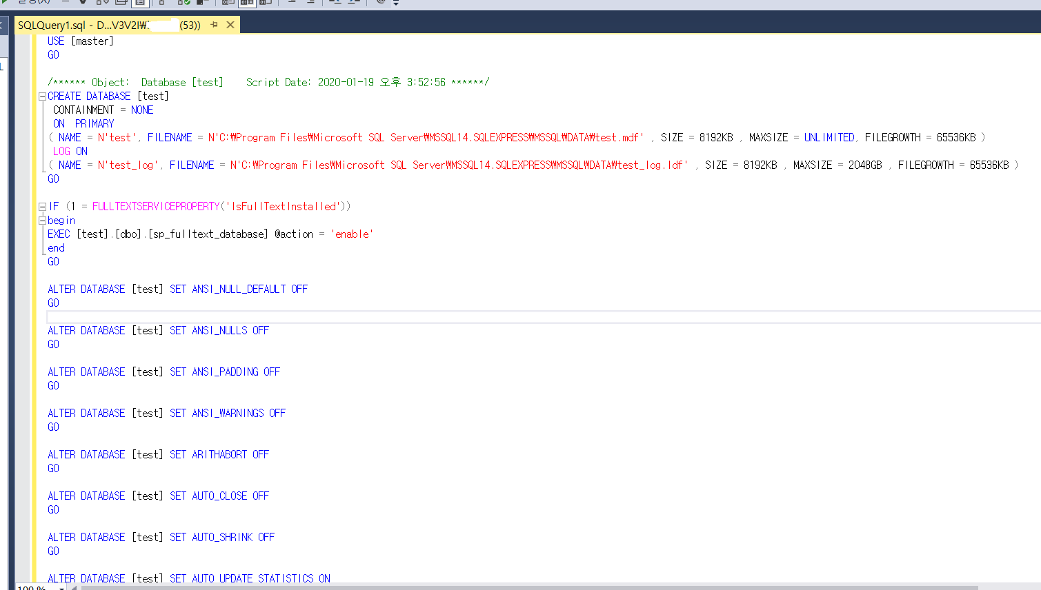 GUI 방식 말고도, SQL쿼리로 데이터베이스가 어떻게 생겨났는지를 확인할 수 있는 방법이다. 위와 같은 경로로 따라가서 클릭하게 되면 아래와 같은 트레이가 나타나게 된다.