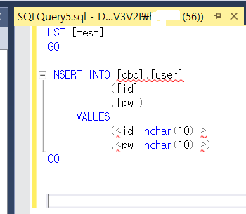 위와 같은 경로로 새 쿼리 편집기 창을 켜면, INSERT INTO 쿼리가 어느정도 완성되어서 나타나게 된다.