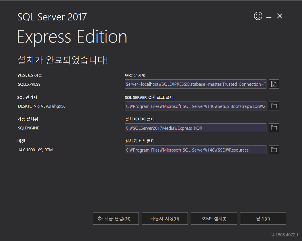 Microsoft SQL Server 2019 Express 설치 + SSMS (0) | 2020.01.19 |