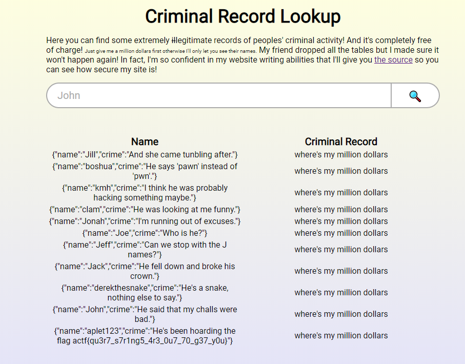 이제 Criminals 테이블의 값을 json형태로 serialize해서 다 빼오는 쿼리를 작성해서 날려보자.