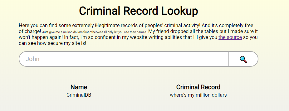 간단하게 sql 쿼리를 실행시킬 수 있도록 되어있고, 일부 특수문자들을 필터링하는 것을 알 수 있다.