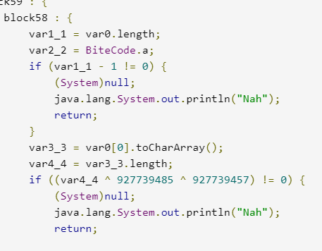 Analyzing overall source code with peek, the java program get a single main function argument input called 'var0'