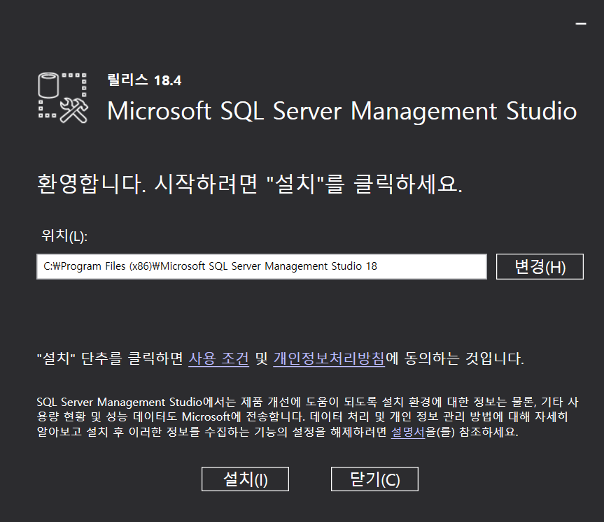 설치가 완료되었다고 한다. SSMS 설치를 눌러서 바로 SSMS를 설치해도 된다.