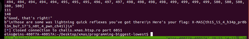 array = sorted(list(map(int, p.recvuntil("]")[:-1].split(b","))))